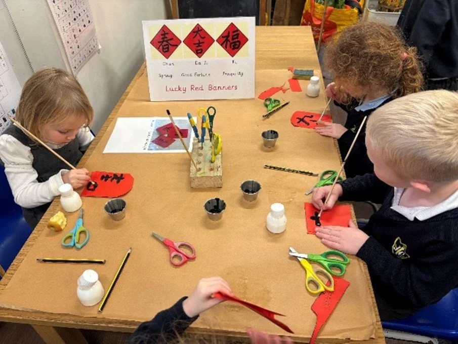 This week in Reception we have been learning all about Lunar New Year. We listened to the story of The Great Race that placed all the animals in the Chinese Zodiac. We have loved exploring Chinese writing and symbols, as well as using our problem solving and cutting skills to make our very own lucky red envelopes! Today we even tried some noodles, using chopsticks – very good for little hands and fine motor skills!